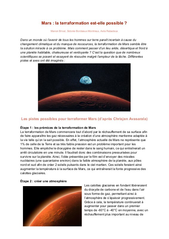 Correction Élèves Activité 6 Es Svt Terraformation De Mars